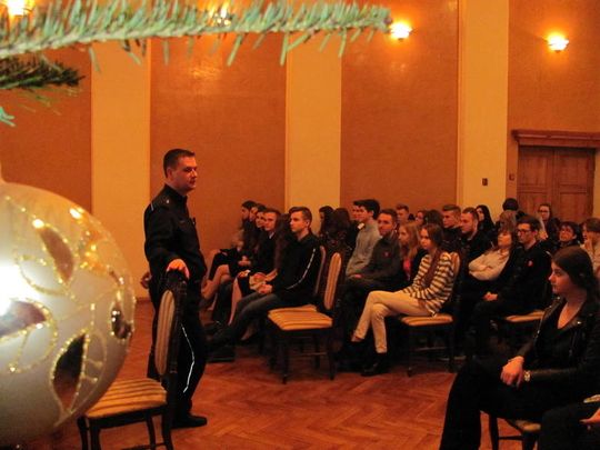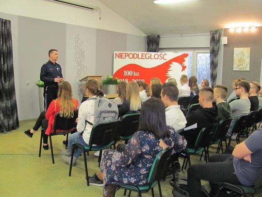 Podczas prowadzonych spotkań z młodzieżą nie sposób było pominąć zagrożeń, jakie niesie ze sobą zażywanie dopalaczy i narkotyków, a także problematyki odpowiedzialności prawnej nieletnich.