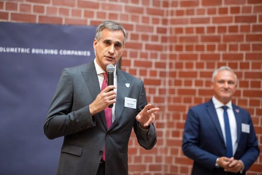 Sam Tikriti, Prezes i COO Volumetric Building Companies (VBC) otwierając spotkanie podkreślił, że budownictwo modułowe stanowi przyszłość branży ze względu na korzyści, jakie przynosi inwestorom, klientom i środowisku: Stoimy przed różnymi wyzwaniami w budownictwie - nieefektywność prowadzi do coraz większego śladu węglowego na świecie. Wykorzystanie technik budownictwa modułowego zapewnia szybszą realizację projektów, o znacznie lepszych parametrach akustycznych i termicznych, co ostatecznie zmniejsza wpływ na środowisko poprzez redukcję śladu węglowego. VBC posiada wiedzę i doświadczenie w dostarczaniu rozwiązań modułowych dla klientów na całym świecie; hoteli o wysokości do 20 pięter, niedrogich mieszkań, i domów studenckich. Nasze możliwości produkcyjne pozwalają nam na dostarczenie 3.000 modułów rocznie tylko z jednej z naszych fabryk, co oznacza ogromną, potencjalną redukcję śladu węglowego i pozytywny wpływ na środowisko – powiedział Sam Tikriti.