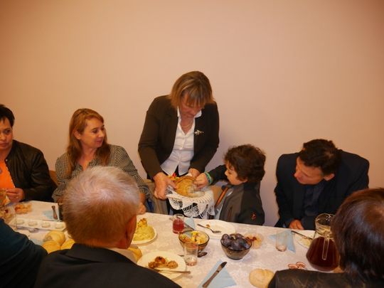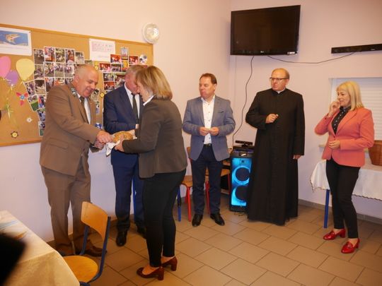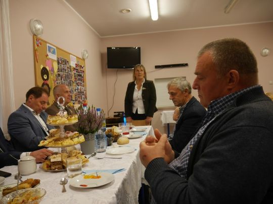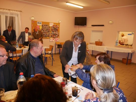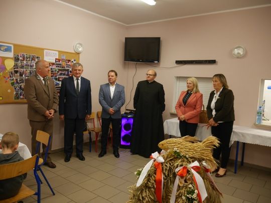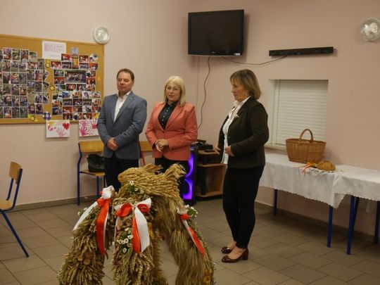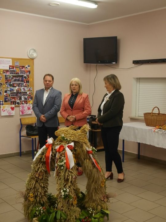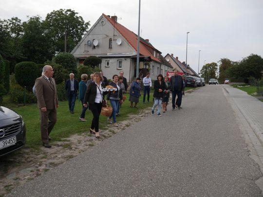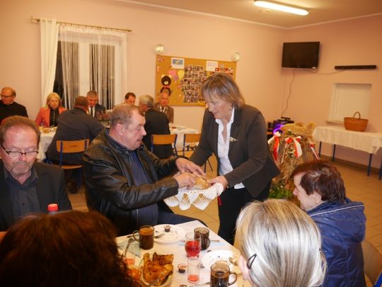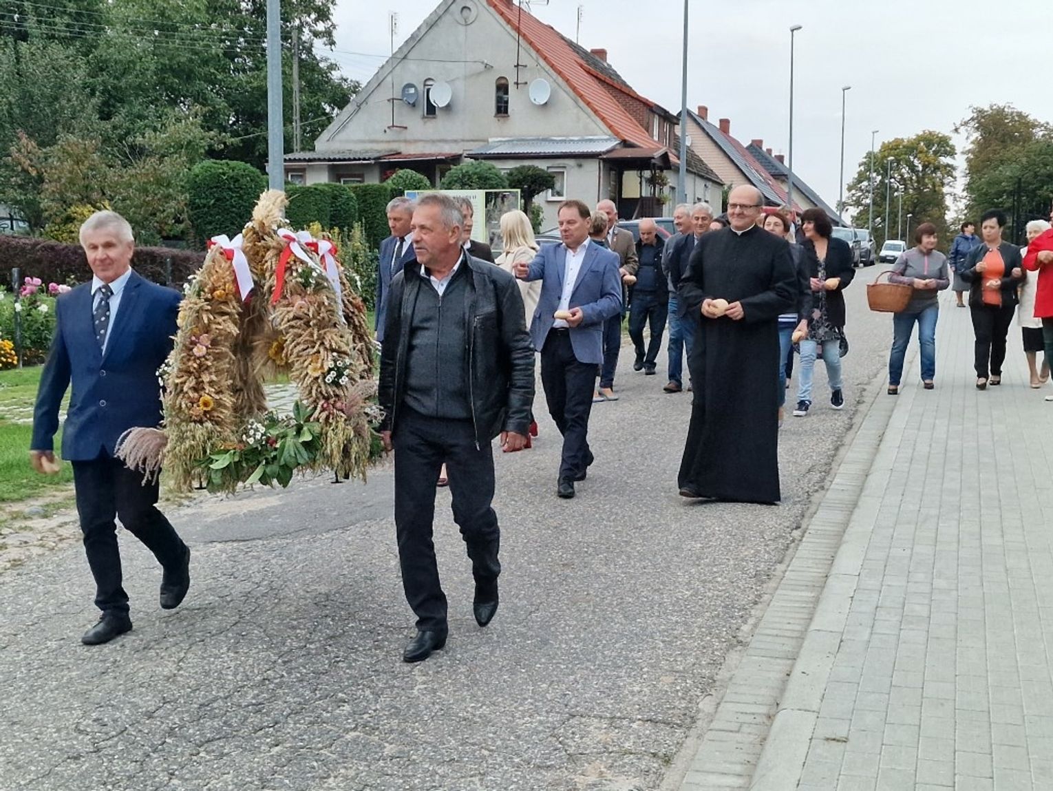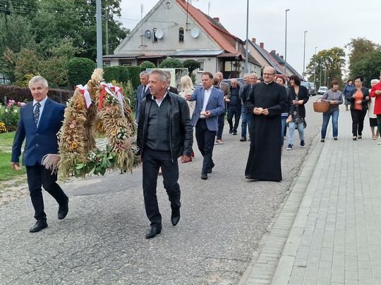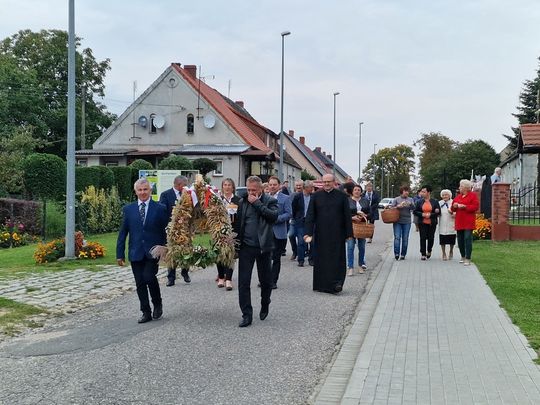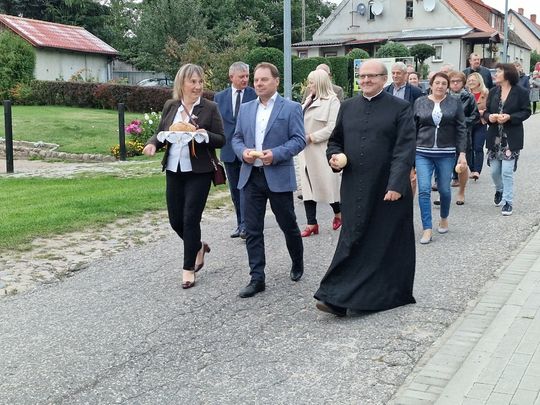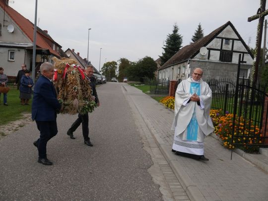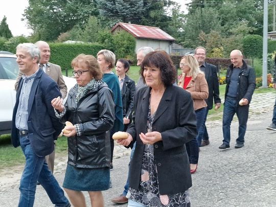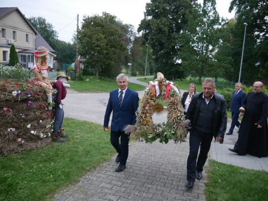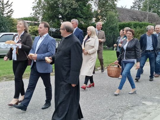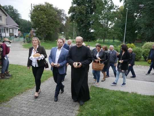 Po nabożeństwie uczestnicy uroczystości w barwnym korowodzie przemaszerowali do świetlicy wiejskiej, gdzie w części oficjalnej odbyły się prezentacje oraz symbolicznym akcie pani sołtys podzieliła się dożynkowym chlebem z mieszkańcami, aby w kolejnych miesiącach tego chleba im nie zabrakło.