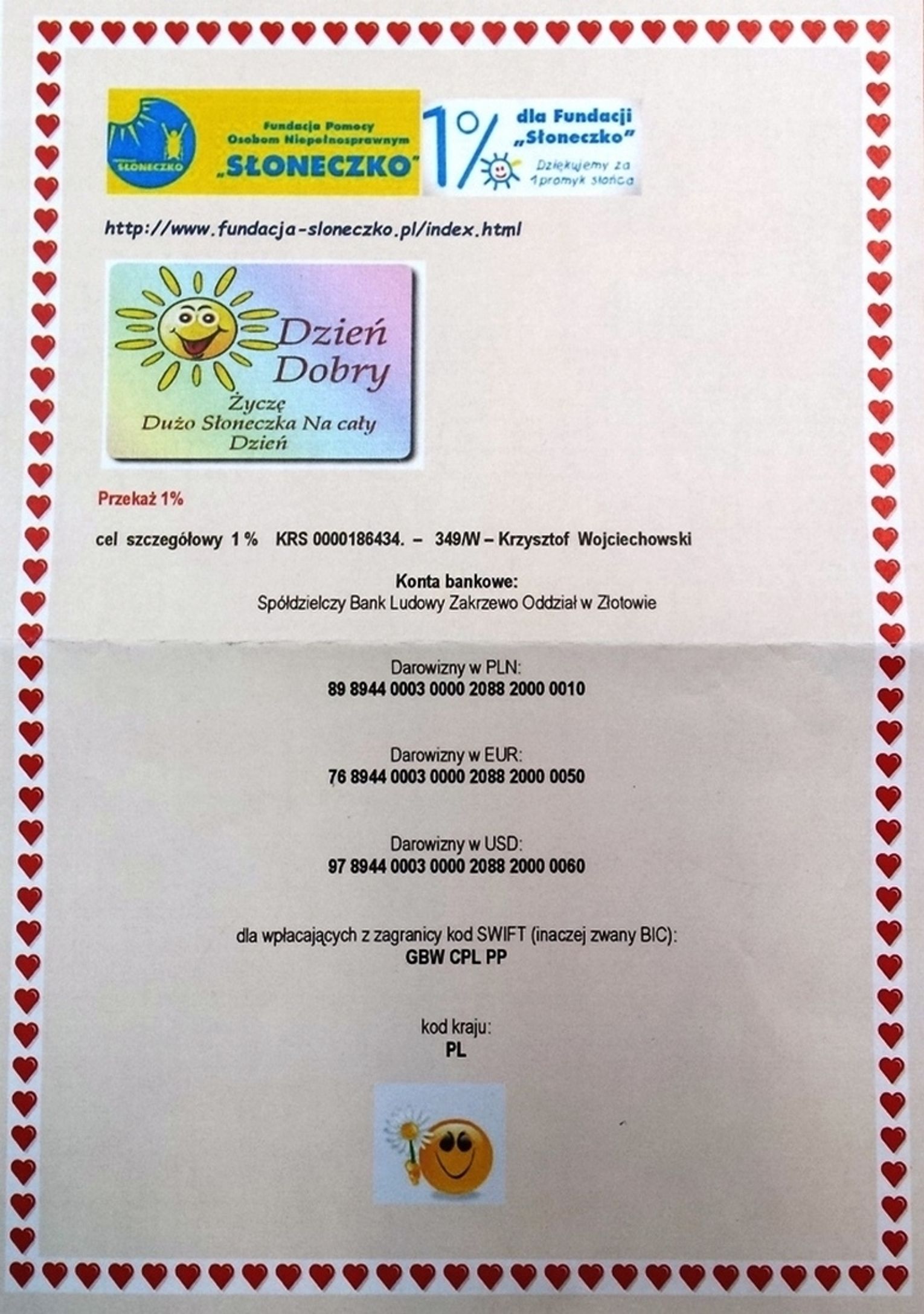 Podajemy numery kont, na które można dokonywać wpłat. Każda złotówka to promyk słońca, dla darczyńcy i obdarowanego.