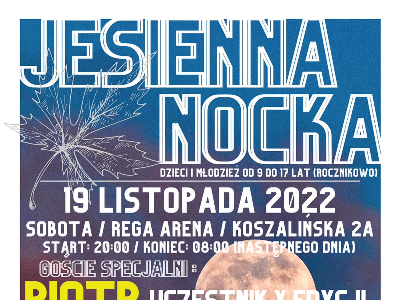 Już 19 listopada 2022 r. w Rega Arenie w Płotach odbędzie się po raz kolejny wydarzenie Jesienna Nocka, które raz zarazem gromadzi co raz większą rzeszę fanów, ponieważ dzisiaj już wydarzenie realizowane przez MGOKiS w Płotach od 2018 roku cieszy się niemałą popularnością wśród dzieci