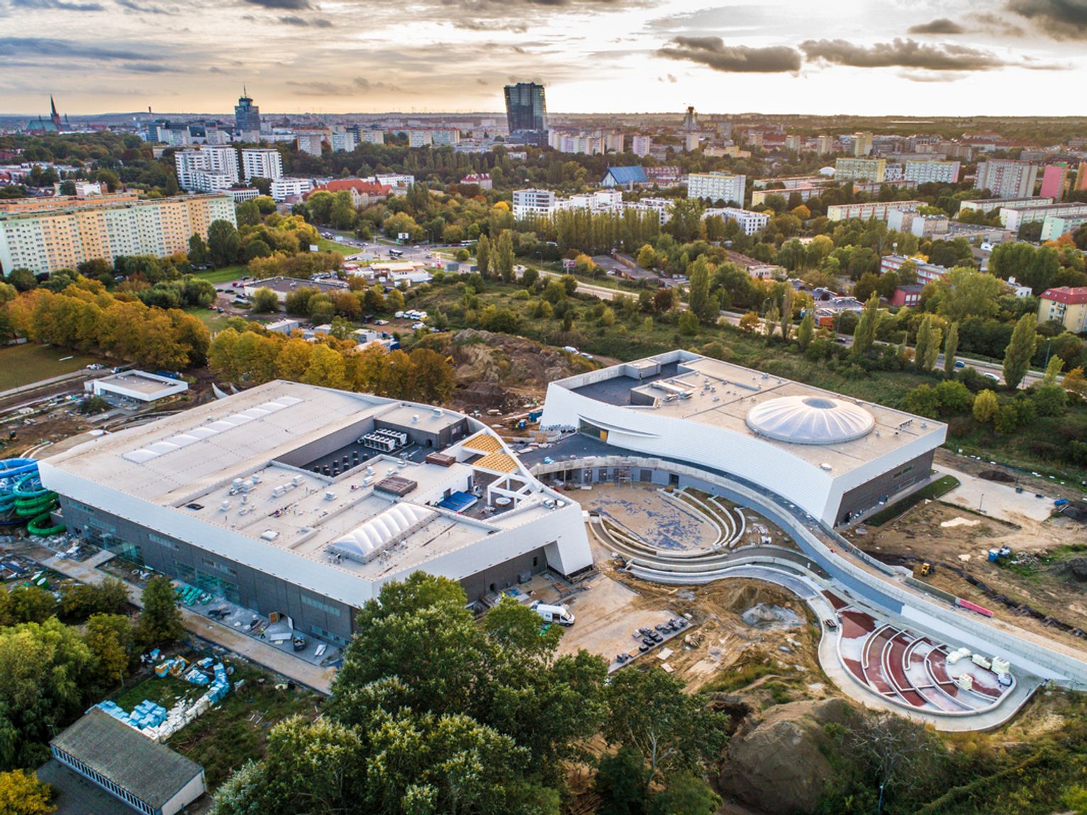 a kubatura 177.000 m3. W nowoczesnym trzykondygnacyjnym budynku aquaparku znajdzie się m.in. 17 basenów i 11 zjeżdżalni o łącznej długości pół kilometra, a także jedna z największych w Polsce strefa saun, których przewidziano aż 16.