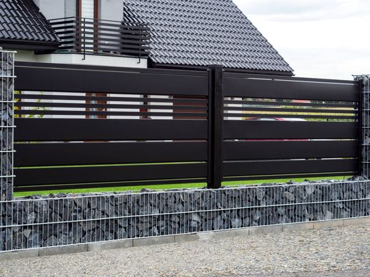 Ciekawą propozycją, dobrze wpisującą się w ideę ogrodu surowego i funkcjonalnego jest też ogrodzenie ze stali kortenowskiej. Arkusze blachy wypełniają całe przęsła lub stanowią uzupełnienie wybranych przęseł z oferty Plast-Met. Ich kolor zmienia się z biegiem lat od rdzawoczerwonego po szary. To rozwiązanie niesztampowe, które z pewnością przypadnie do gustu indywidualistom poszukującym nietypowych rozwiązań.