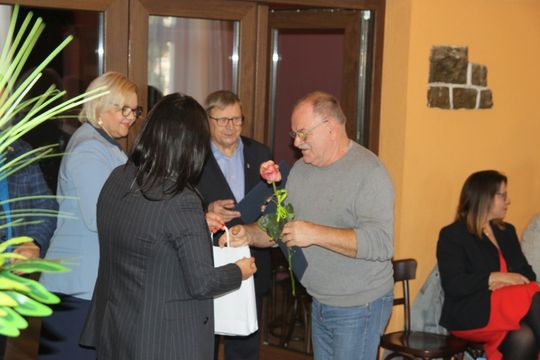 Burmistrz Gryfic Andrzej Szczygieł wraz z Zastępcą Burmistrza Marzeną Domaradzką, Sekretarzem Gminy Alicją Bojówką, Przewodniczącym Rady Miejskiej Tomaszem Kaszlejem oraz Sylwią Zielińską-Poźniak, uhonorował wyróżnionym przedstawicielom sołectw okolicznościowymi dyplomami oraz zestawami upominków, każdy też otrzymał symboliczną różę.