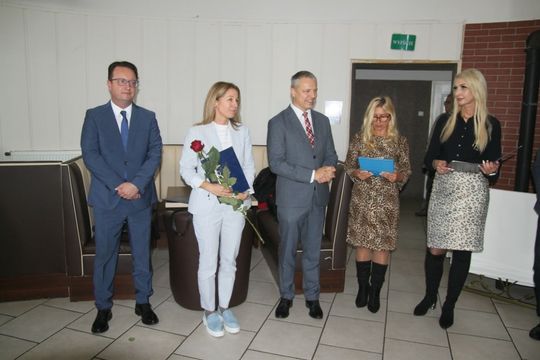 Burmistrz wraz z grupą współpracowników samorządowych, podziękował dyrektorom i nauczycielom za ich trud i zaangażowanie w wychowaniu i nauce najmłodszych mieszkańców gminy.