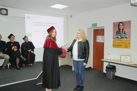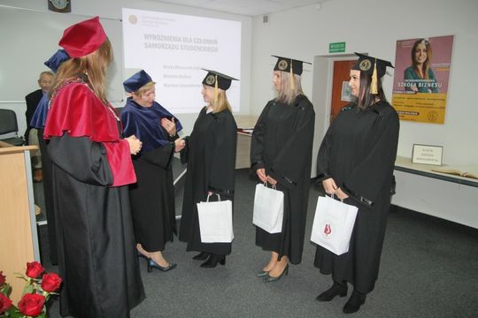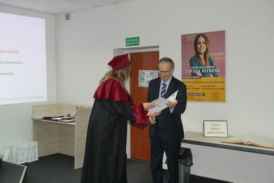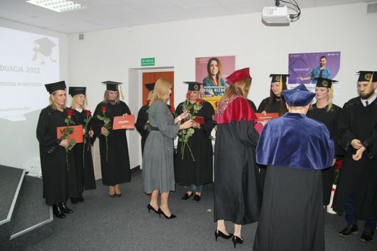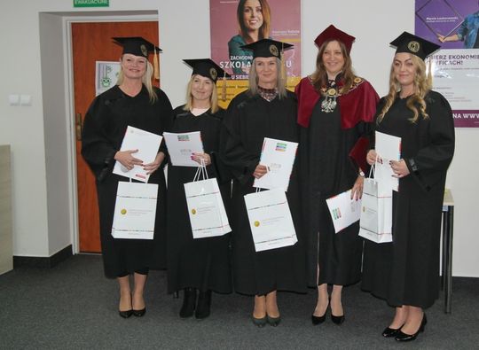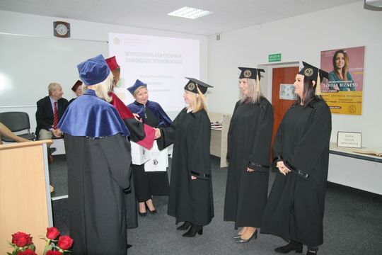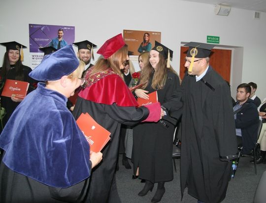 Tyle o samej uczelni ale rozpoczęcie nowego roku akademickiego zaczyna się zakończeniem poprzedniego czyli graudacją absolwentów. Swoje dyplomy wraz z życzeniami sukcesów życiowych w dalszej karierze zawodowej odebrali absolwenci kierunków pedagogicznych i ekonomicznych oraz studiów podyplomowych.