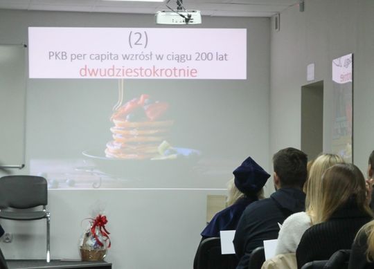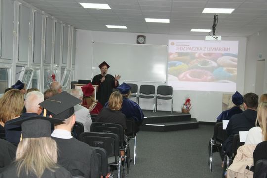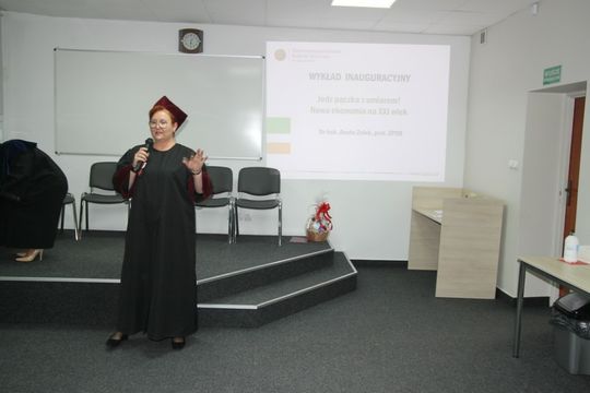 Wykład inauguracyjny pt. „Jedz pączka z umiarem – Nowa ekonomia na XXI wiek” wygłosiła dr hab. Aneta Zelek w którym w bardzo skondensowanej formie przedstawiła wyzwania jakie przed ekonomią stawiają coraz bardziej złożone przemiany społeczne i polityczne.