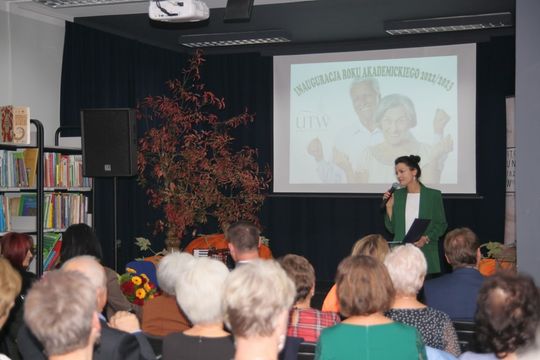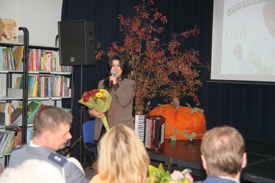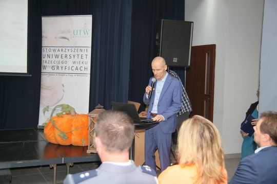 Inauguracyjne spotkanie otworzyła i prowadziła prezes Stowarzyszenia Uniwersytet Trzeciego Wieku w Gryficach Bożena Biłyj. W trakcie było wiele ciepłych słów pod adresem zarówno Pani Prezes jak i wszystkich licznie zebranych słuchaczy.