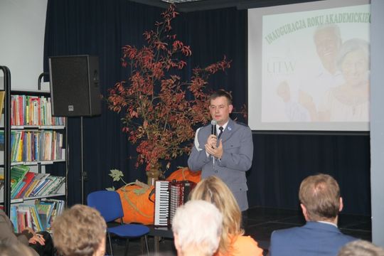 Wykład inauguracyjny pod tytułem „Kryzys, katastrofa i apokalipsa jako strategie perswazyjne w reklamie wygłosił dr Piotr Szarszewski, część artystyczną wypełnił występ działającego przy UTW Chóru – który jak dowiedzieliśmy się z zapowiedzi ma już na swym koncie zagraniczne sukcesy.
