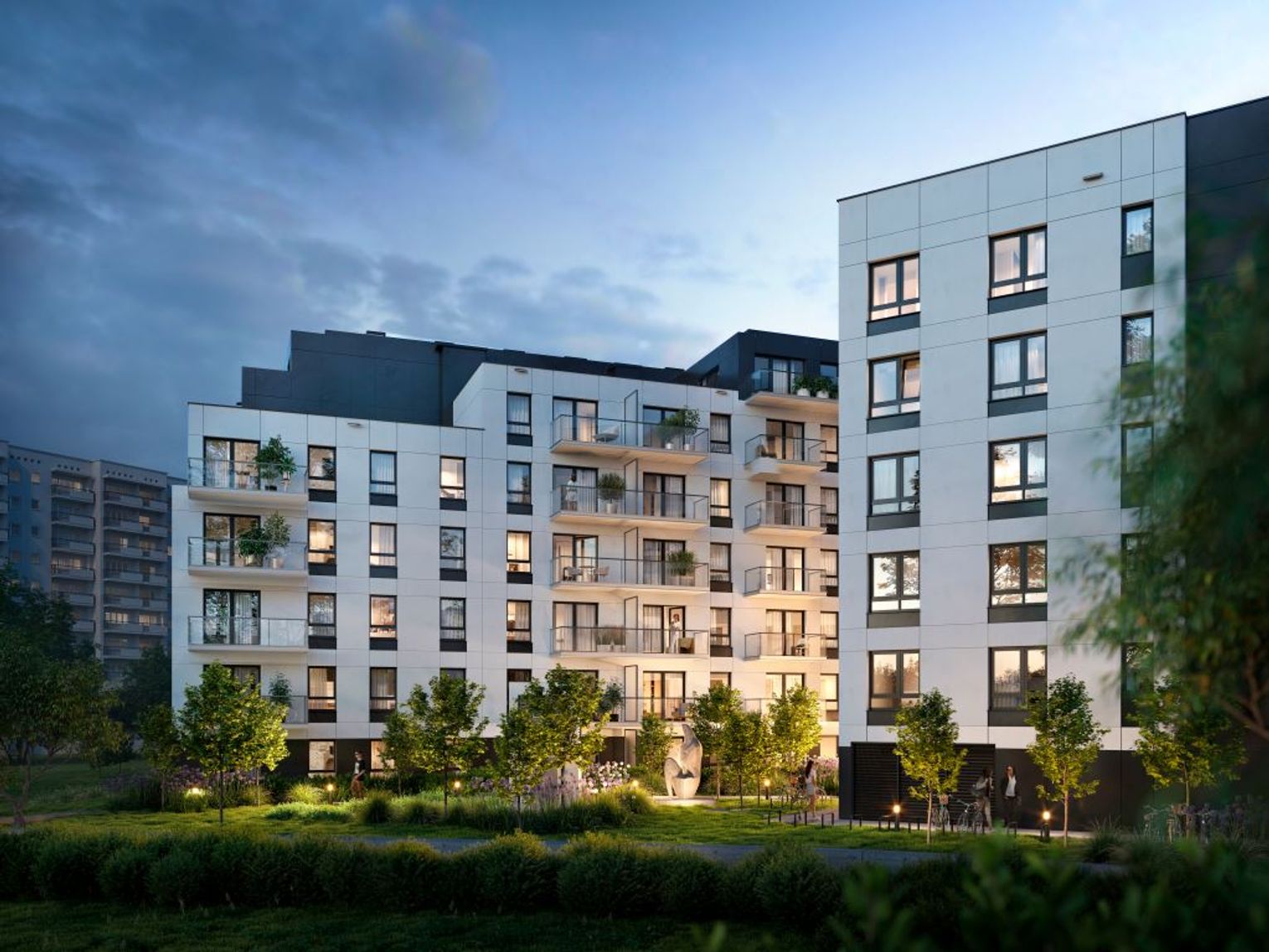 Warto zwrócić uwagę na nowoczesną architekturę inwestycji, utrzymaną w eleganckim, minimalistycznym stylu. W apartamentowcu z przestronnym lobby wejściowym zostały wykorzystane materiały najwyższej jakości. Ciekawy design wykracza jednak poza jego stylowe wnętrze – na kameralnym placu usytuowanym przed wejściem do budynku wkomponowana zostanie rzeźba stworzona przez lokalnych artystów. Otoczenie dopełni bogato nasadzona roślinność. Zaprojektowane przez architekta zieleni wewnętrzne strefy zielone obejmą również place zieleni, ławki oraz stylowo oświetlone miejsca do wypoczynku.