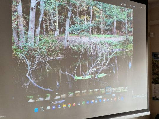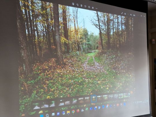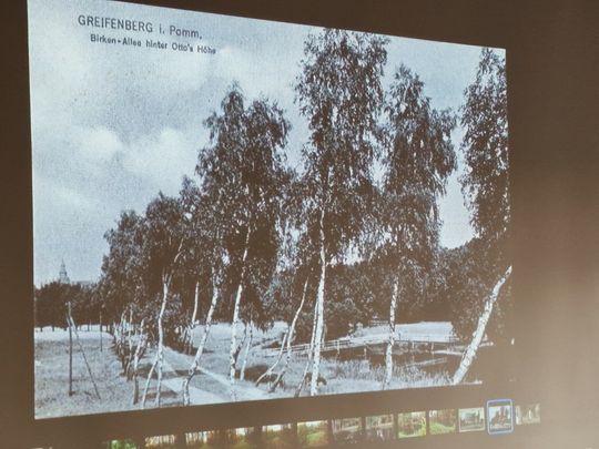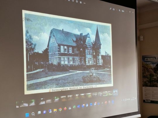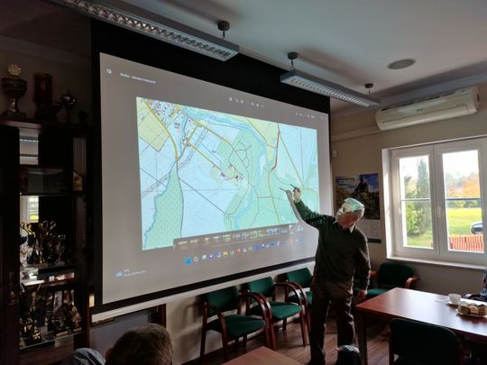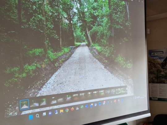 Druga część w Nadleśnictwie Gryfice rozpoczęła się prezentacją obejmującą zdjęcia archiwalne a także dokumenty oraz wykonane już w okolicy prace.