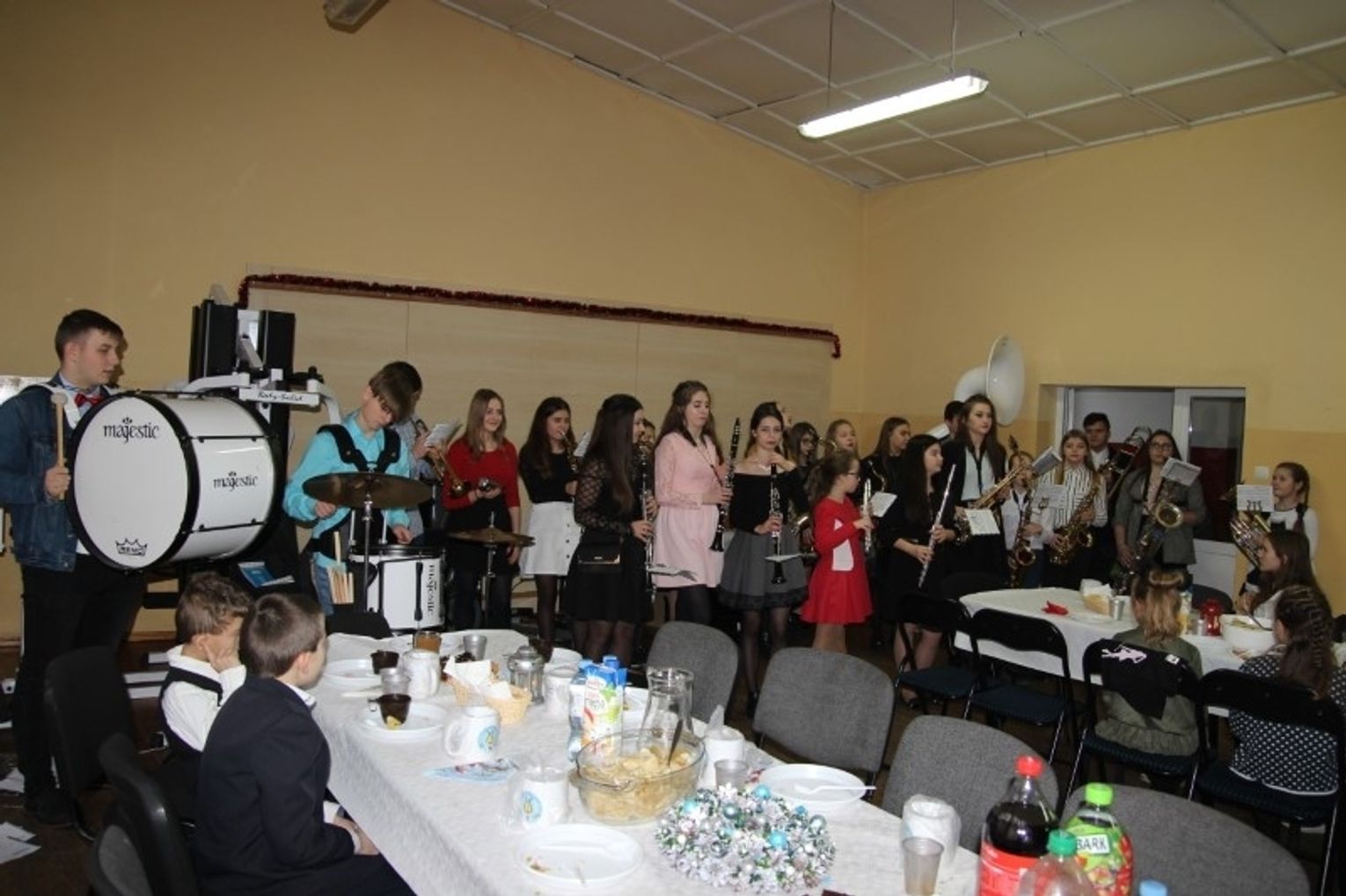 W sobotę 22 grudnia w Sali Domu Strażaka na Orkiestrowym Spotkaniu Wigilijnym spotkali się członkowie orkiestry rodzice, burmistrz Płotów Radosław Mackiewicz z małżonką, przedstawiciele Rady Miejskiej oraz sympatycy Młodzieżowej Orkiestry Dętej.