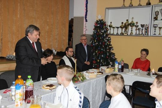 Spotkanie otworzył Przez Franciszek Grudecki skłdając życzenia świąteczne i noworoczne do których przyłączyli się wszyscy zebrani - łamiąc się opłatkiem wczuwali się w atmosferę magicznych Świąt Bożego Narodzenia, spędzając mile czas śpiewając i grając kolędy.