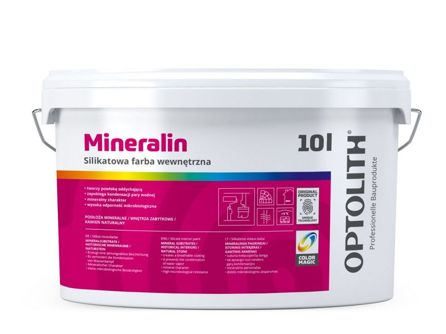 Silikatowa farba wewnętrzna Optolith Mineralin od firmy Hufgard jest wysoce paroprzepuszczalna, łatwa w nakładaniu i niekapiąca. Trwale wiąże się z podłożami mineralnymi, jest odporna na wodę i szorowanie, a także dostępna w szerokiej gamie kolorów systemu Color Magic.