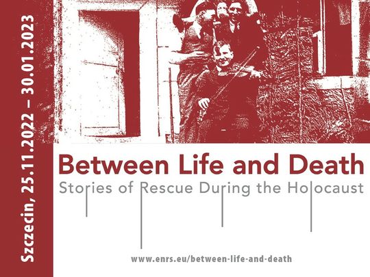 Wystawa „Między życiem a śmiercią. Historie pomocy w czasie Zagłady” to prezentacja pochodzących z dwunastu krajów Europy histori osób niosących pomoc Żydom prześladowanym w czasie II wojny światowej oraz relacje ocalonych.
