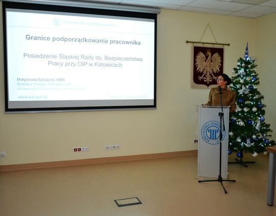 Członkowie Rady mieli także okazję wysłuchać prelekcji Małgorzaty Szczęsny z Katedry Prawa i Ubezpieczeń Społecznych Uniwersytetu Ekonomicznego w Katowicach, która omówiła zagadnienia związane z granicami podporządkowania pracownika w ramach stosunku pracy, w kontekście obowiązujących przepisów prawa.