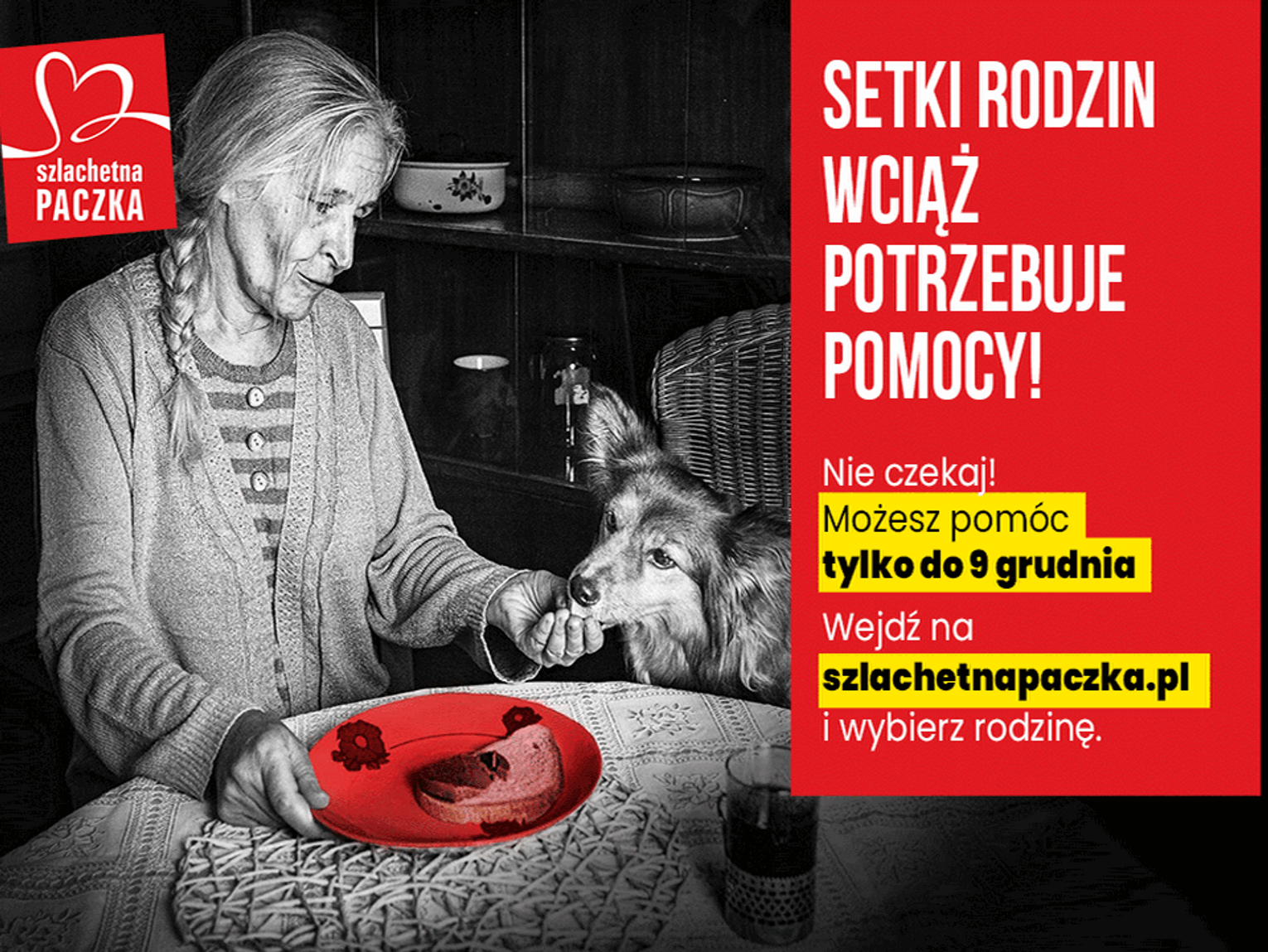 W tym trudnym roku – obciążonym gospodarczymi i społecznymi problemami, nie możemy zostawić potrzebujących samych sobie. Wolontariusze Szlachetnej Paczki dotarli do tysięcy osób, dla których głód, osamotnienie, chłód, strach o jutro są chlebem powszednim. Ponad 14300 rodzin otrzyma pomoc, ale ponad 1100 wciąż na nią czeka. Przeczytaj ich historie umieszczone na www.szlachetnapaczka.pl i dziel się dobrem z tymi, którzy mają gorzej. Możesz to zrobić do piątku, 9 grudnia. Nie potrzeba wiele. Bo dobro to wynik dzielenia.