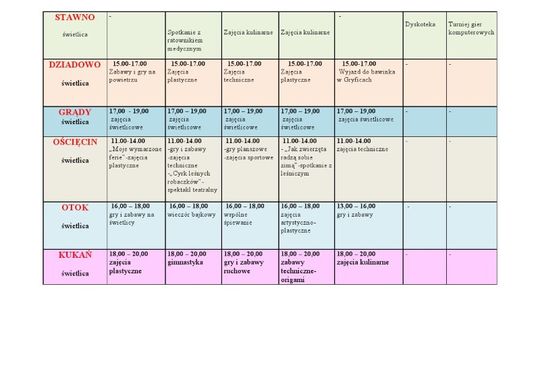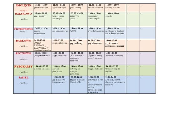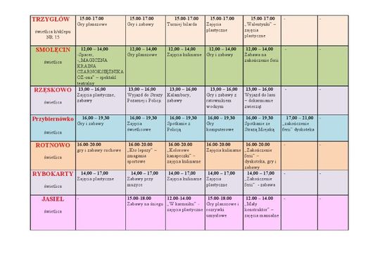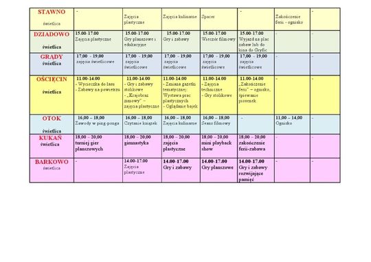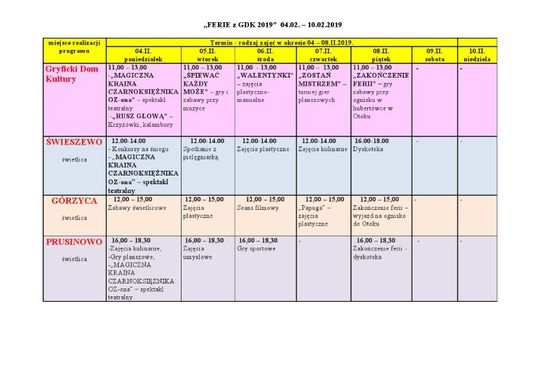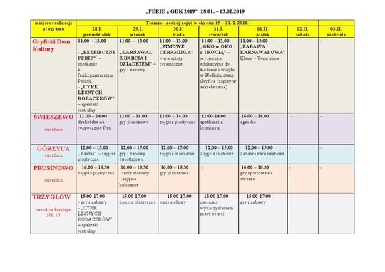 Szczegółowy plan ferii w Gryfickim Domu Kultury oraz na świetlicach wiejskich.