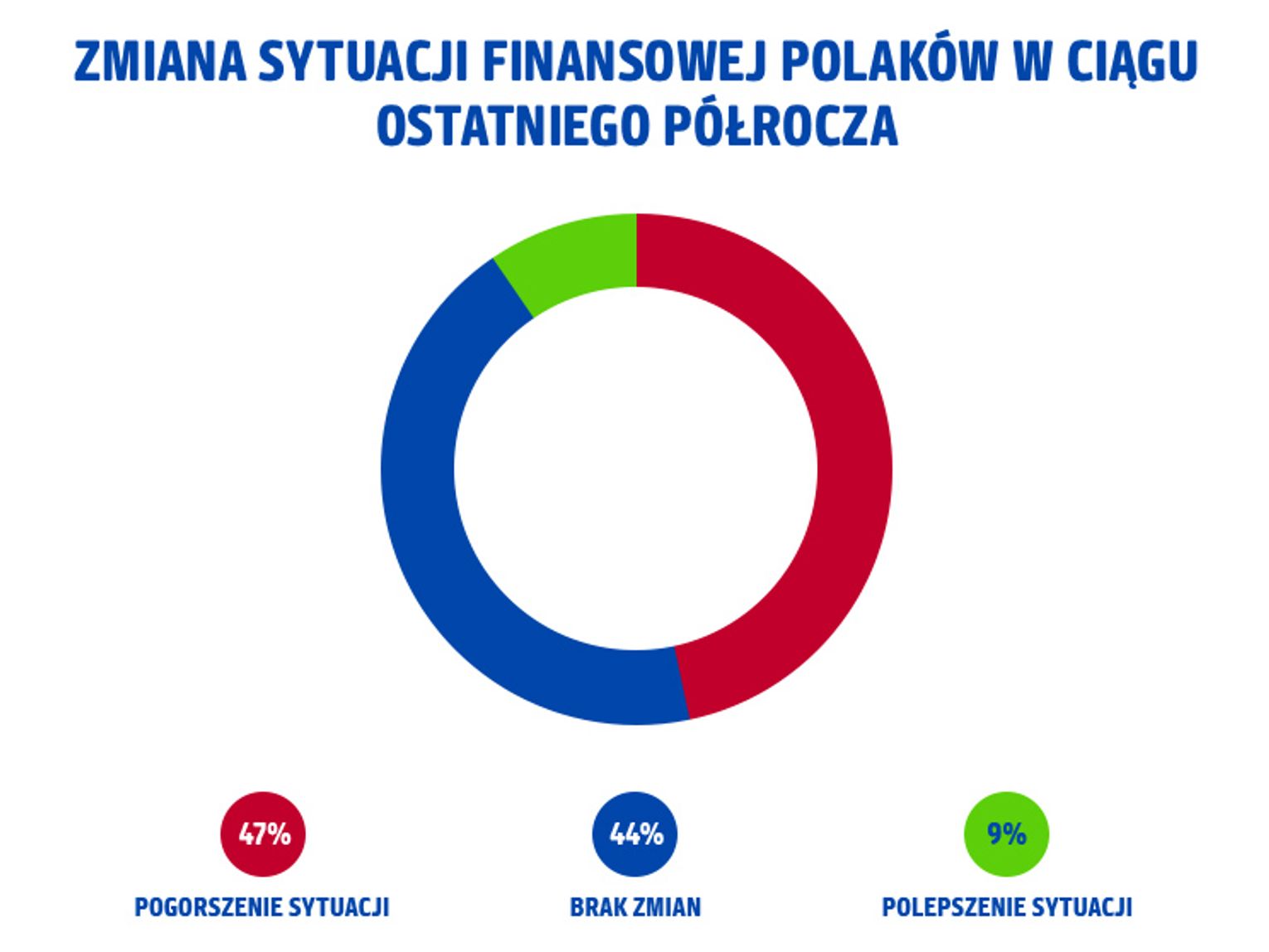 Porównując to do wyników badania ze stycznia ubiegłego roku, widać, że rośnie grupa osób, których sytuacja finansowa z roku na rok się pogarsza. Blisko 47% Polaków uważa obecnie, że ich sytuacja finansowa jest gorsza niż pół roku temu, podczas gdy na początku 2022 roku deklarowało to 38% Polaków.