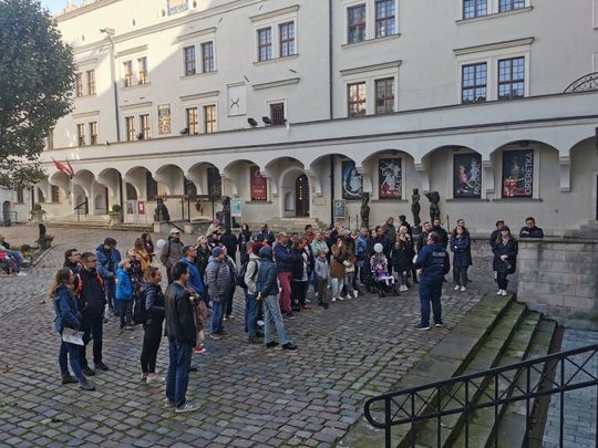 Oprowadzanie po dziedzińcach w języku polskim z tłumaczeniem na język migowy. Prowadzenie Tomasz Wieczorek i Renata Dąbek