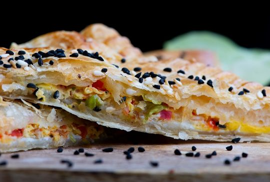 Rozkładamy arkusz ciasta francuskiego. Rozbijamy jajka i oddzielamy żółtka od białek. Na połowie układamy żółtka – tyle ile się zmieści pozostawiając wolne 2 cm po brzegach. Przykrywamy drugą połową arkusza ciasta. Przez naciskanie zębami widelca sklejamy cztery boki. Smarujemy po wierzchu białkiem z jajek i posypujemy czarnuszką oraz sezamem. Wkładamy do piekarnika nagrzanego do 180°C na 15 min.