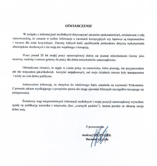 Zarzuty, których treść upubliczniła prokuratura dotyczą obowiązków służbowych i nie mają nic wspólnego z korupcją.