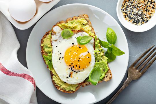 Przepis: Pieczywo skrapiamy oliwą (możemy je podpiec w tosterze). Awokado przekrajamy, usuwamy pestkę, wydrążamy miąższ, rozgniatamy go i smarujemy kromki. Skrapiamy kilkoma kroplami soku z cytryny. Na wierzchu kładziemy jajko. Posypujemy nasionami czarnuszki i dekorujemy świeżą bazylią.