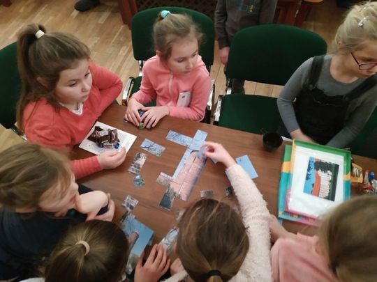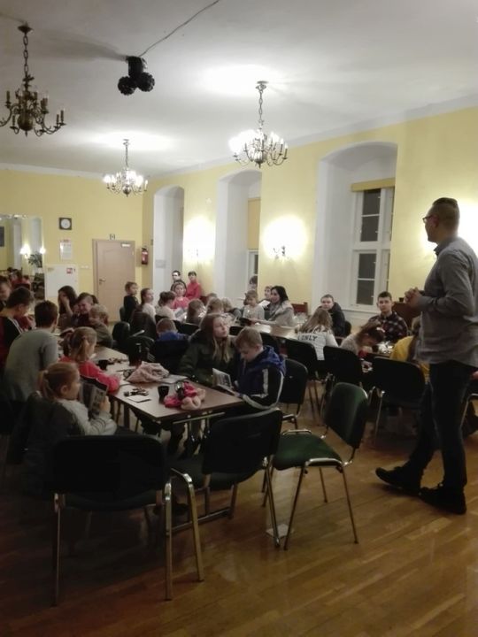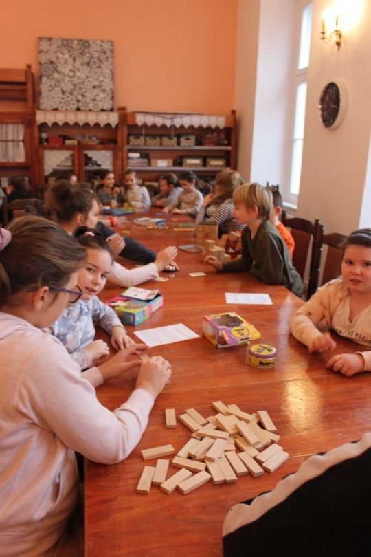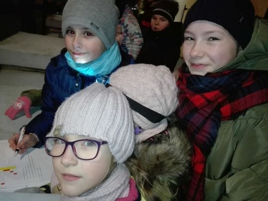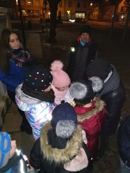 Pierwszy tydzień ferii zakończyliśmy grą miejską, która polegała na wieczornym zwiedzaniu , rozwiązywaniu krzyżówek, rebusów, zadań związanych z zabytkami, legendami, historiami naszego miasta. Dla dzieci było to nie lada wyzwanie. Zaopatrzeni w latarki, asekurowani przez strażaków, poruszaliśmy się w pięciu grupach, według planu miasta i wskazówek zawartych w grze. Przy Baszcie Kaszanej niespodziewanie staliśmy się świadkami obrony miasta przed skradającymi się gryficzanami i oczywiście miska kaszy znów uratowała miasto. Zwiedzanie baszty z pochodniami, latarkami wywarło ogromne wrażenie na dzieciakach. Po zdobyciu wszystkich punktów, w pałacu czekało ostatnie zadanie- odnalezienie skarbu (słodycze) ukrytego w zakamarkach rożnych pałacowych pomieszczeń a słodkie pączki i gorąca herbata na rozgrzewkę po trudach wieczornego zwiedzania smakowały wyśmienicie. Dziękujemy wolontariuszom z Zespołu Szkół Ponadgimnazjalnych im. Zbigniewa Herberta w Trzebiatowie oraz Młodzieżowej Drużynie Pożarniczej działającej przy OSP w Trzebiatowie za pomoc na szlaku.
