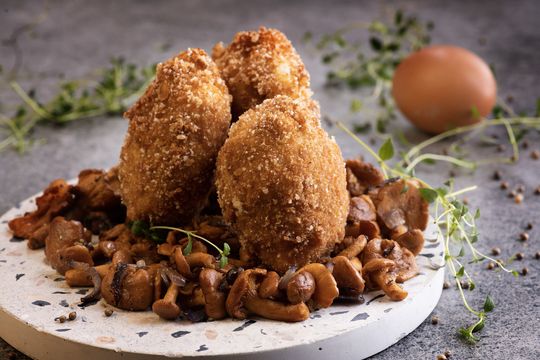 W tym przepisie najważniejsze jest przygotowanie jaja w koszulce. To wyzwanie, ale też spora frajda, czy wręcz kulinarna przygoda. Następnie obtacza się je w bułce tartej, dodatkowo w panierce panko (z chleba tostowego) i smaży na głębokim oleju. W efekcie powstaje sycąca potrawa ze ściętym białkiem i płynnym żółtkiem. Ale to jeszcze nie wszystko!