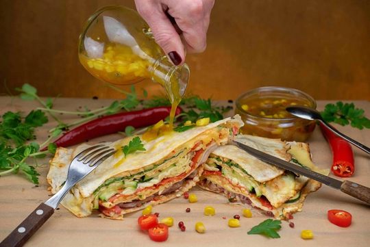 Quesadilla z serem edamskim, papryką, cukinią i chutneyem z mango i mięty jest doskonałym pomysłem na sycący obiad lub rozgrzewającą i pobudzającą zmysły kolację. Przepis znajdziesz poniżej.