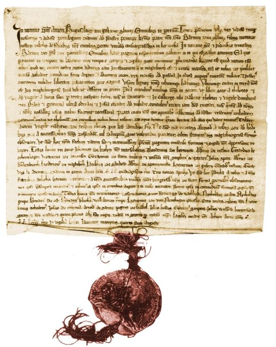 Początki dziejów Szczecina sięgają VIII-IX wieku. W miejscu dzisiejszego wzgórza zamkowego mieścił się gród, który rozwijając się przez kolejne stulecia stał się ważnym ośrodkiem handlowym oraz główną siedzibą książęcego rodu Gryfitów. Zwieńczeniem tego procesu kształtowania miasta było nadanie przez księcia Barnima I aktu lokacji na prawie magdeburskim 3 kwietnia 1243 roku.