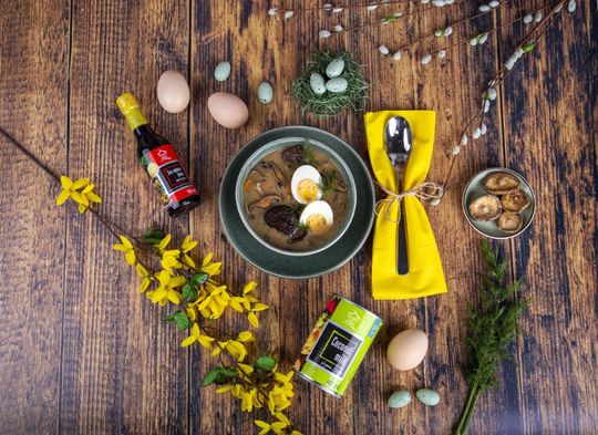 Żurek to tradycyjne danie wielkanocne i mało kto wyobraża sobie święta bez tej zupy. W jaki sposób przygotować żurek? Na pewno potrzebny jest dobry zakwas. Ten możemy zrobić samodzielnie lub kupić gotowy. Zwyczajowo zupa jest kwaśna, przygotowana na mięsnym wywarze, a dodatkami do niej są jajka i biała kiełbasa. Jak zatem przygotować wersję bezmięsną? To bardzo proste - zamiast kiełbasy warto wykorzystać wędzone tofu, które dostarczy nam niezbędnego białka lub pieczone jabłka czy ziemniaki. Do ugotowania wywaru natomiast można wykorzystać aromatyczne grzyby shiitake i mleczko kokosowe. Danie stanie się lekkie i zyska azjatycki akcent. Sprawdźcie jeden z przepisów na żurek bez grama mięsa.