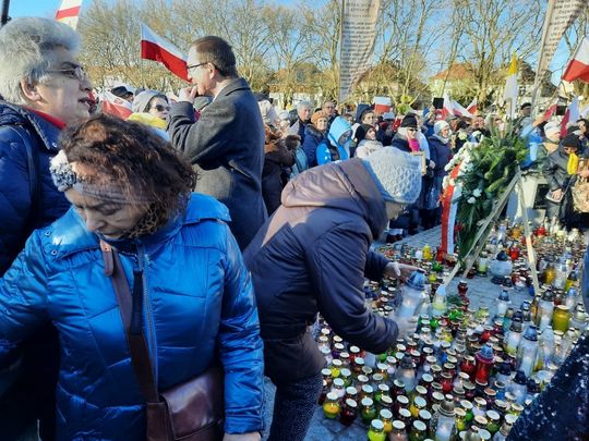 Gryficka delegacja wzięła też udział w uroczystościach w Szczecinie, gdzie Marsz Papieski rozpoczął się Mszą. Św. w Sanktuarium Najświętszego Serca Pana Jezusa skąd uczestnicy przemaszerowali na Jasne Błonia. Tam pod pomnikiem św. Jana Pawła II ustawiono znicze oraz wizerunki Świętego.