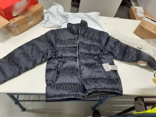Zatrzymaliśmy też dwie przesyłki nadane przez mieszkańca Szczecina. Odbiorcy w Wlk. Brytanii (osoby prywatne) mieli otrzymać podrabianą odzież o wartości 95.902 zł. W przesyłkach znajdowały się 283 szt. różnej odzieży - skarpety, legginsy, bluzy, dżinsy, komplety bielizny, swetry, t-shrity, spodnie dresowe i koszulki 10 znanych marek.