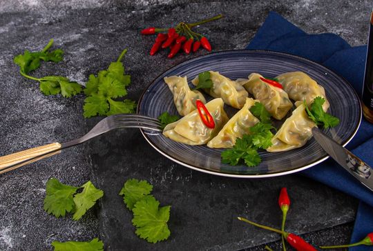 - Sos śliwkowy przelej do miseczek i podawaj z gotowymi pierożkami.