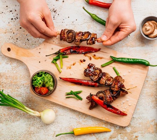 SZASZŁYKI Z WIEPRZOWINY I GRZYBÓW SHIITAKE