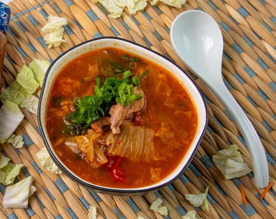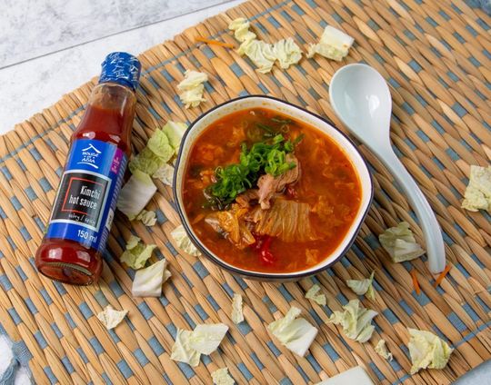 2. Do dużego garnka wlej olej i podsmaż na średnim ogniu kurczaka. Następnie dodaj cebulę, marchewkę oraz kapustę i całość smaż kila minut. Po tym czasie dodaj sos kimchi, marynatę gochujang bulgogi BBQi duś przez 2-3 minuty. Dodaj bulion drobiowy i doprowadź do wrzenia. Zmniejsz ogień i gotuj na wolnym ogniu przez około 20 minut.