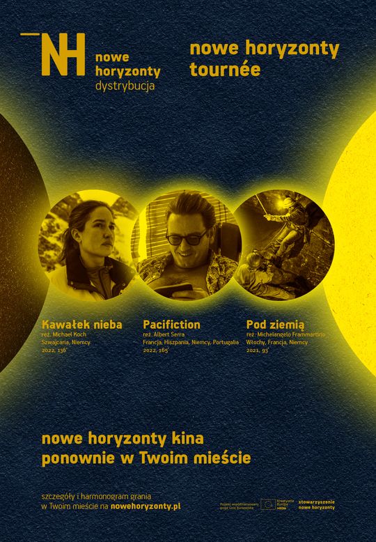 W trakcie wiosennego tournée zostaną zaprezentowane trzy tytuły. Pierwsza propozycja to szwajcarski kandydat do Oscara „Kawałek nieba" Michaela Kocha, czyli rozgrywająca się w alpejskiej scenerii przewrotna opowieść o miłości. Kolejny film to „Pacifiction" określany mianem znakomitego „tropikalnego thrillera", najnowsza produkcja Alberta Serry. Trzecia propozycja zatytułowana „Pod ziemią" to mistrzowskie kino Michelangelo Frammartino, które pozwoli choć na chwilę uciec od problemów codzienności. Pierwsze pokazy w ramach tournée w szczecińskim Zamku odbędą się 14 kwietnia o godzinie 17:00, szczegółowy program zamieszczony poniżej.