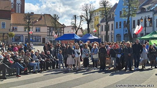 Coroczne spotkania gryficzan na Placu Zwycięstwa w celu upamiętnienia Narodowego Święta Konstytucji 3 Maja są wyrazem szacunku, pamięci i dumy wobec dorobku i spuścizny naszych przodków - pierwszego w Europie aktu prawnego, ustalającego podstawy nowożytnego ustroju w Polsce.