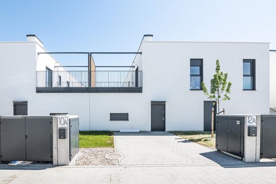 – Domy szeregowe zaprojektowano w jasnych barwach, które są przyjazne dla otoczenia i stanowią tło dla aktywności oraz odpoczynku dla mieszkańców. Biel elewacji przełamaliśmy ciemnymi akcentami stanowiącymi ramę dla stref wejściowych i ogrodów – zaznacza architektka. – Zabudowa o charakterze atrialnym ma intencjonalną rozedrganą strukturę, która uwypukla bryłę. W etapie C zastosowaliśmy specjalne podcienie, które znajdują się nad wejściami do budynków, a w etapie D postawiliśmy na dwa atria w parterze – główne i gospodarcze – oraz duży taras na górze, a także mocny akcent w postaci portali drzwiowych – dodaje Alicja Miasik.