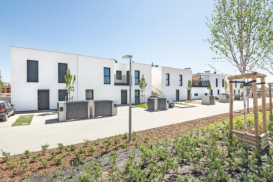Każdy z nagrodzonych etapów stanowi oddzielną strukturę mieszkalną. Etap B to minimalistyczne i eleganckie domy szeregowe zapewniające największą prywatność mieszkańcom. Etap C i D to unikatowe na skalę miasta dwupoziomowe domy atrialne. Charakter domów podkreślają kolory z palety Baumit Life w odcieniach 0019 i 0891, które korespondują z otoczeniem, ale jednocześnie akcentują subtelnie różnice w zabudowie.