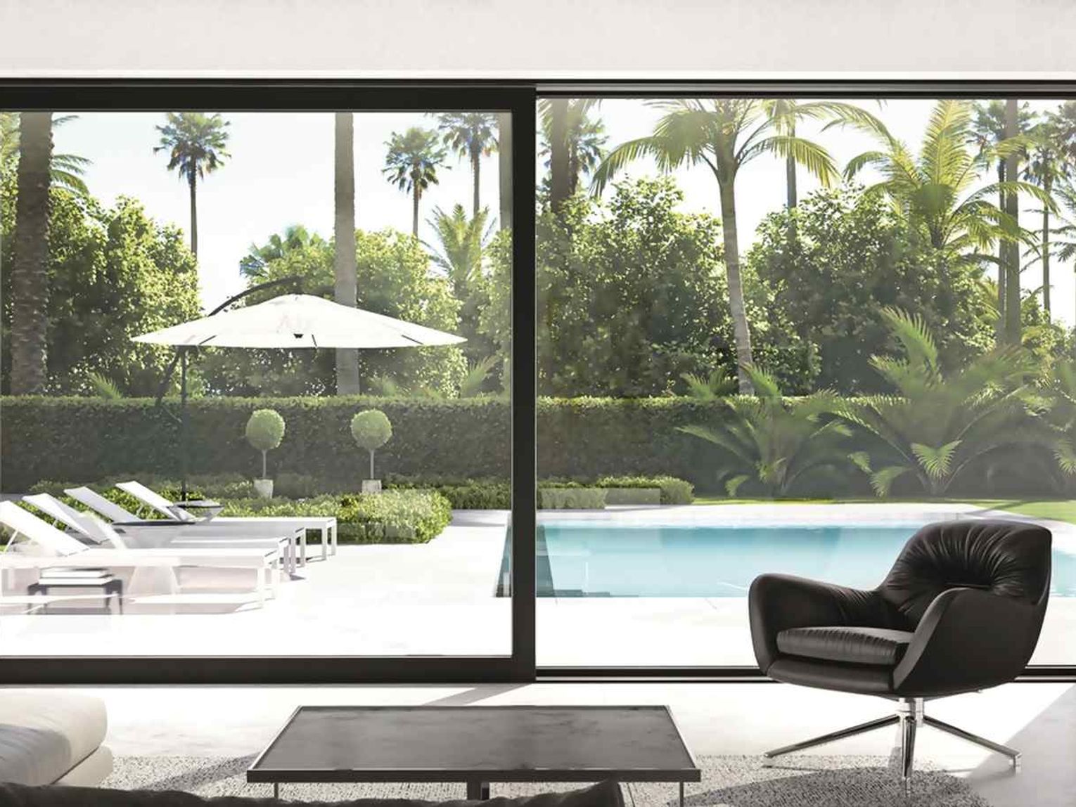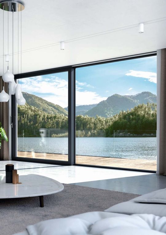 Jednym z ciekawszych systemów drzwi przesuwnych opartych na technologii PVC jest Schüco LivIngSlide Panorama. Jest to system z niskim stałym skrzydłem, ekstremalnie wąskimi w widoku profilami i bardzo dużymi przeszkleniami. W części stałej, profil ramy ukryty jest w progu, dzięki czemu szyba sięga niemalże posadzki. Ten nowy wariant drzwi podnośno-przesuwnych posiada imponująco wąską ramę skrzydła o szerokości zaledwie 72 mm przy głębokości zabudowy 194 mm. Dzięki temu LivingSlide Panorama gwarantuje 10% więcej światła niż wersja podstawowa systemu. Drzwi dostępne są w wielu wariantach wykonania ze skrzydłami stałymi i przesuwnymi. W przypadku dużych powierzchni można zdecydować się na wersję z czterema skrzydłami – dwoma stałymi zewnętrznymi i dwoma ruchomymi pośrodku systemu. Natomiast w niewielkich przestrzeniach idealnie sprawdzi się rozwiązanie dwuskrzydłowe – w którym jedno ze skrzydeł jest ruchome, a drugie stałe.