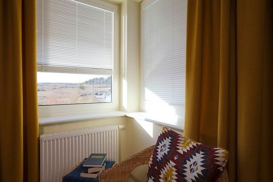 Aby odmienić wygląd okna, warto także rozważyć powieszenie zasłon lub firanek. – Chociaż żaluzje drewniane mogą być ozdobą samą w sobie, kombinacja żaluzji i zasłon może dodać wnętrzu dodatkowego charakteru i ciepła, a także pozwolić na łatwiejszą regulację ilości światła wpadającego do pomieszczenia – zauważa Agnieszka Gołębiewska z Anwis. Jeśli twoje okna są niewielkie, możesz pomyśleć o zasłonach zwisających z masywnych karniszy. To świetne rozwiązanie, które wprowadzi do pomieszczenia elementy tajemniczości i intymności. W połączeniu z drewnianymi żaluzjami stworzą oryginalny i unikalny styl, ceniony przez wielu miłośników home stagingu.
