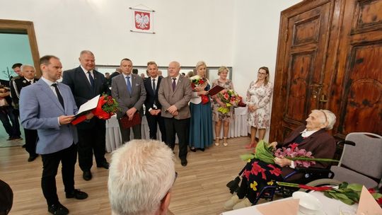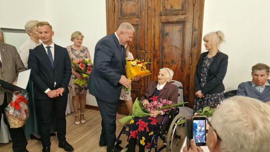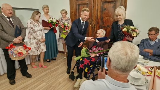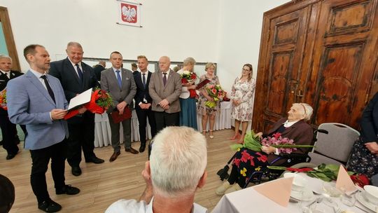 Wśród wspaniałych prezentów przekazanych przez przybyłych gości znalazł się też taki chyba wyjątkowy. Kierownik Placówki Terenowej KRUS w Gryficach Remigiusz Kulka przekazał wraz z życzeniami jeszcze wielu lat życia decyzję Prezesa KRUS o podwyższeniu świadczenia o kwotę ponad 5500 zł.