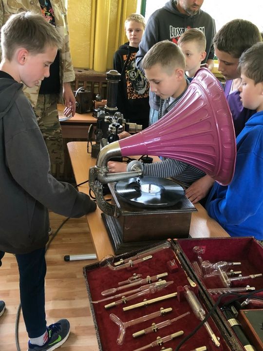 Mieli okazję przyjrzeć się historii i jej dotknąć. Przy pomocy eksponatów ze „Starej Szkoły" – Niepublicznego Domu Kultury fundacji Eksponat nr.1 w Łowiskach, odbyła się swoista podróż w czasie. Były radioodbiorniki lampowe od początków ich powstania, głośniki z lat 20, mierniki lamp, tarczowe urządzenia pomiarowe, nadajniki, protoplasta projektora o uroczej nazwie „magiczna latarnia", telefony i wiele innych zabytków techniki.