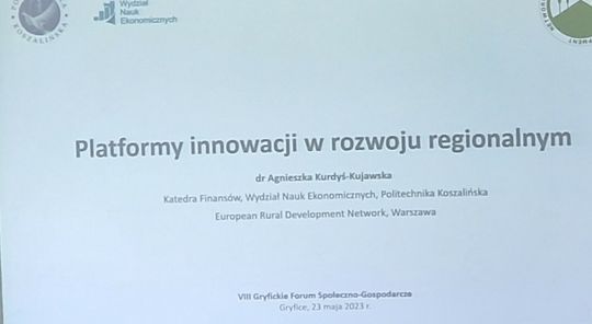 Tomasz Aniuksztys ze stowarzyszenia “Z pomysłem” przedstawił sytuację Gryfic, Dr Bartłomiej Kołsut i Sandra Szczerbal ze Związku Miast Polskich oraz Agnieszka Kurdyś-Kujawska z Politechniki Koszalińskiej omawiali tematy platform i instrumentów terytorialnych w innowacyjnym podejściu do rozwoju miast.