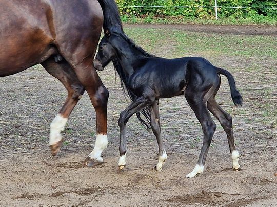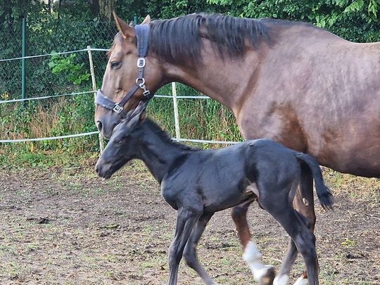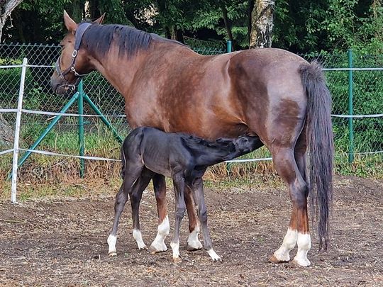 W sobotę 10.06, o 4 nad ranem w Akademickim Ośrodku Jeździeckim w Szczecinie urodził się kary źrebak. Jego rodzicami są nasza wielkopolska klacz Amazonka i ogier More Than Special MG rasy KWPN (holenderski koń gorącokrwisty) ze Stacji Ogierów Verso La Natura. Tato to nowoczesny koń sportowy o wyjątkowym charakterze, jest bardzo łagodny i bezproblemowy w obsłudze.