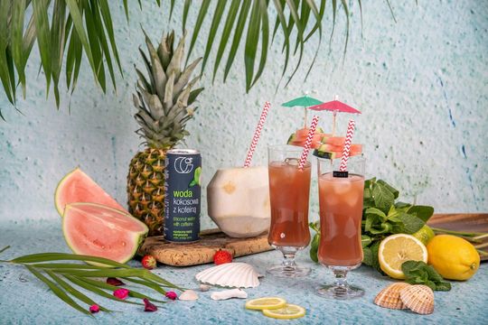 Woda kokosowa z kofeiną to idealny napój dla osób aktywnych fizycznie i umysłowo. Dodana do arbuzowej lemoniady zamiast wody sprawi, że napój nie tylko orzeźwi, ale także doda energii i jeszcze lepiej nawodni organizm.