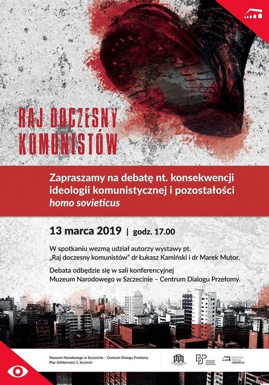 Zapraszamy w środę, 13 marca 2019 roku, do Muzeum Narodowego w Szczecinie – Centrum Dialogu Przełomy na spotkanie z dr. Łukaszem Kamińskim oraz dr. Markiem Mutorem, autorami wystawy „Raj doczesny komunistów”. Prezentuje ona jeden z XX-wiecznych totalitaryzmów, który przyczynił się do wybuchu II wojny światowej i cierpień milionów ludzi podczas jej trwania i po jej zakończeniu. Fragment tej ekspozycji zostanie zaprezentowany przy okazji środowej debaty w formie prezentacji multimedialnej.