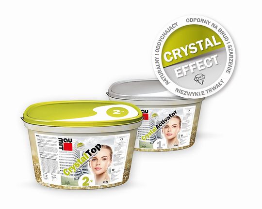Proces wiązania i krystalizacji tynku Baumit CrystalTop zostaje zainicjowany przez specjalny podkład aktywujący Baumit CrystalActivator, wyróżniający się wysokim poziomem PH. Jego zastosowanie jest zatem niezbędne do prawidłowego przygotowania podłoża pod wyprawę tynkarską. Jedynie zastosowanie obu produktów jako zestawu Baumit CrystalSet pozwala osiągnąć efekt w postaci odpornej na zabrudzenia, trwałej powierzchni elewacji,